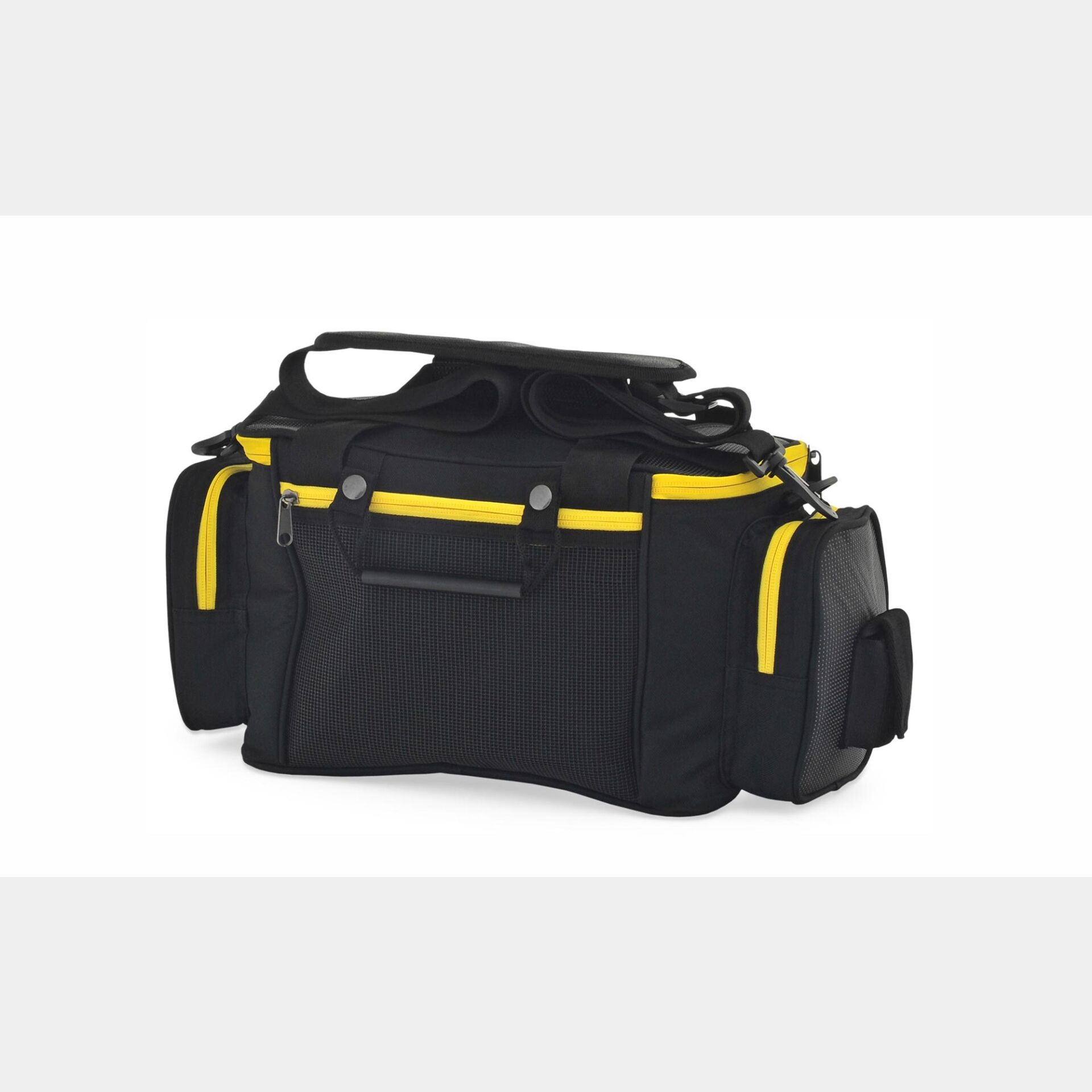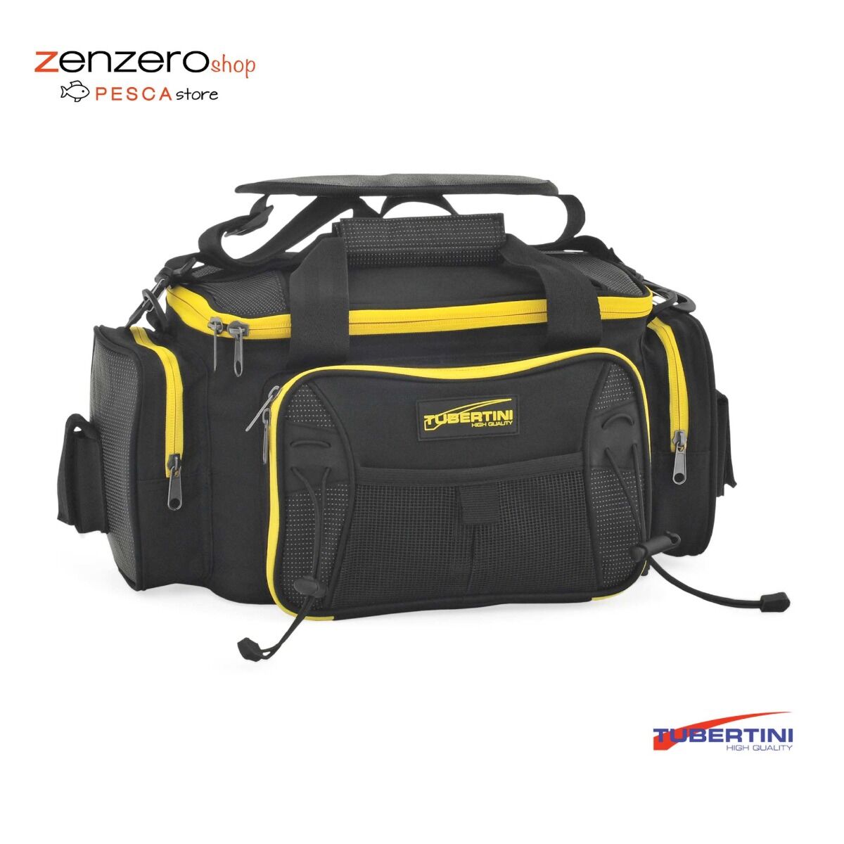 Borsa Tubertini semirigida, ideale per trasportare tutte le piccole minuterie e le attrezzature per le battute di pesca. La borsa ha due tasche laterali, una frontale ed un inferiore, garantendo così un notevole spazio per tutta l'attrezzatura.