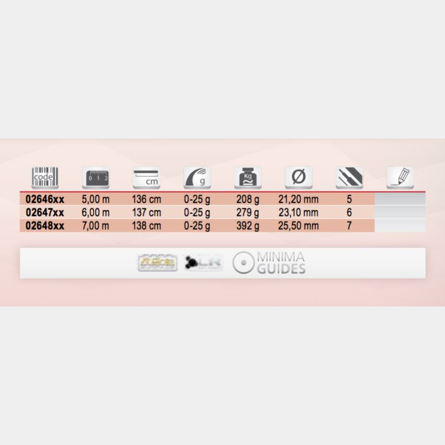 ingombro: 138 cm | potenza: 0-25 g | Peso: 392 g | diametro: 25,50 mm | sezioni: 7