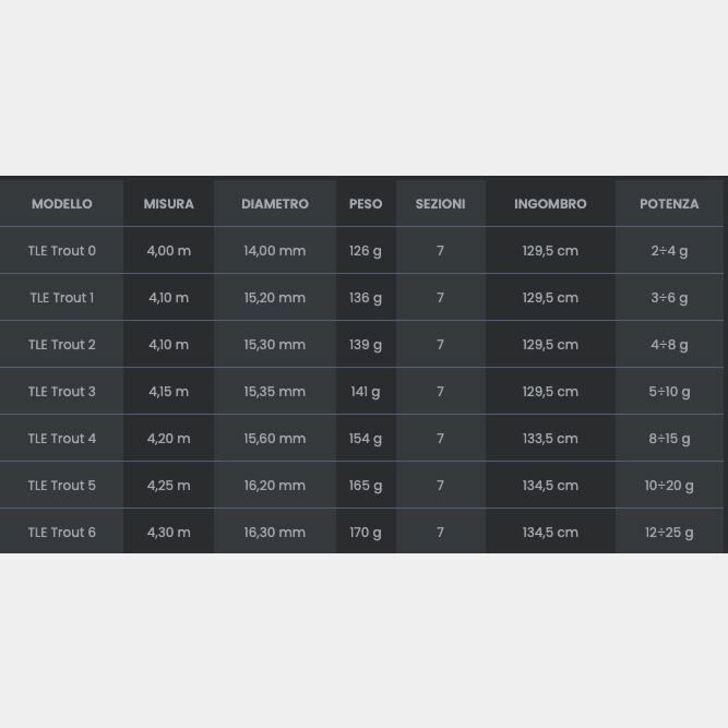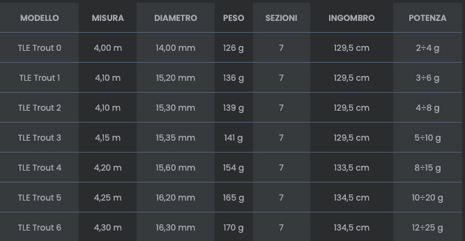 Tubertini Canna per pesca alla trota, TLE Trout, 4 mt, 4.10 mt,, 4.15 mt, 4.20 mt, 4.25 mt, 4.30 mt