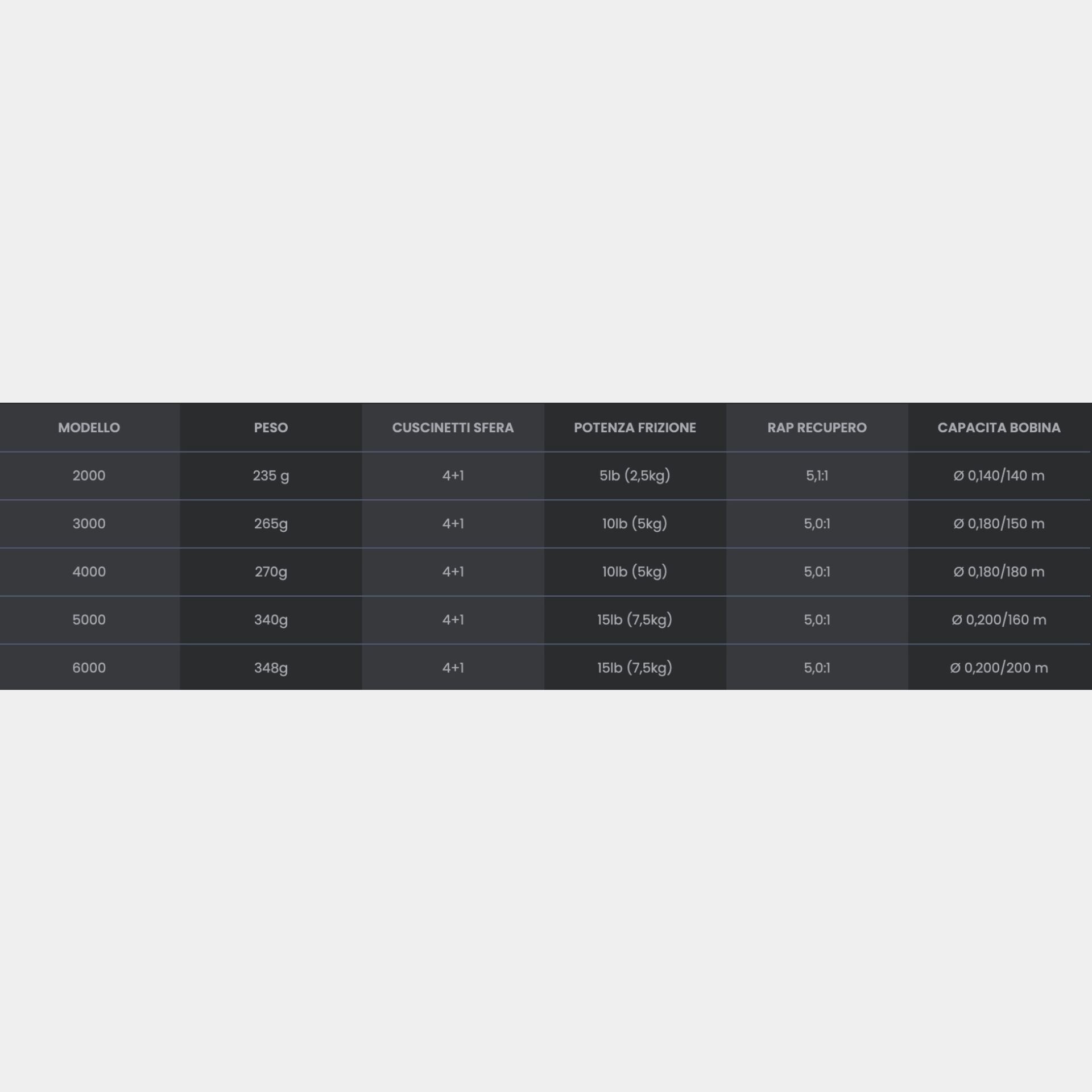 Tutta la serie è dotata di bobina match per ottimizzare ulteriormente la leggerezza di questi mulinelli.