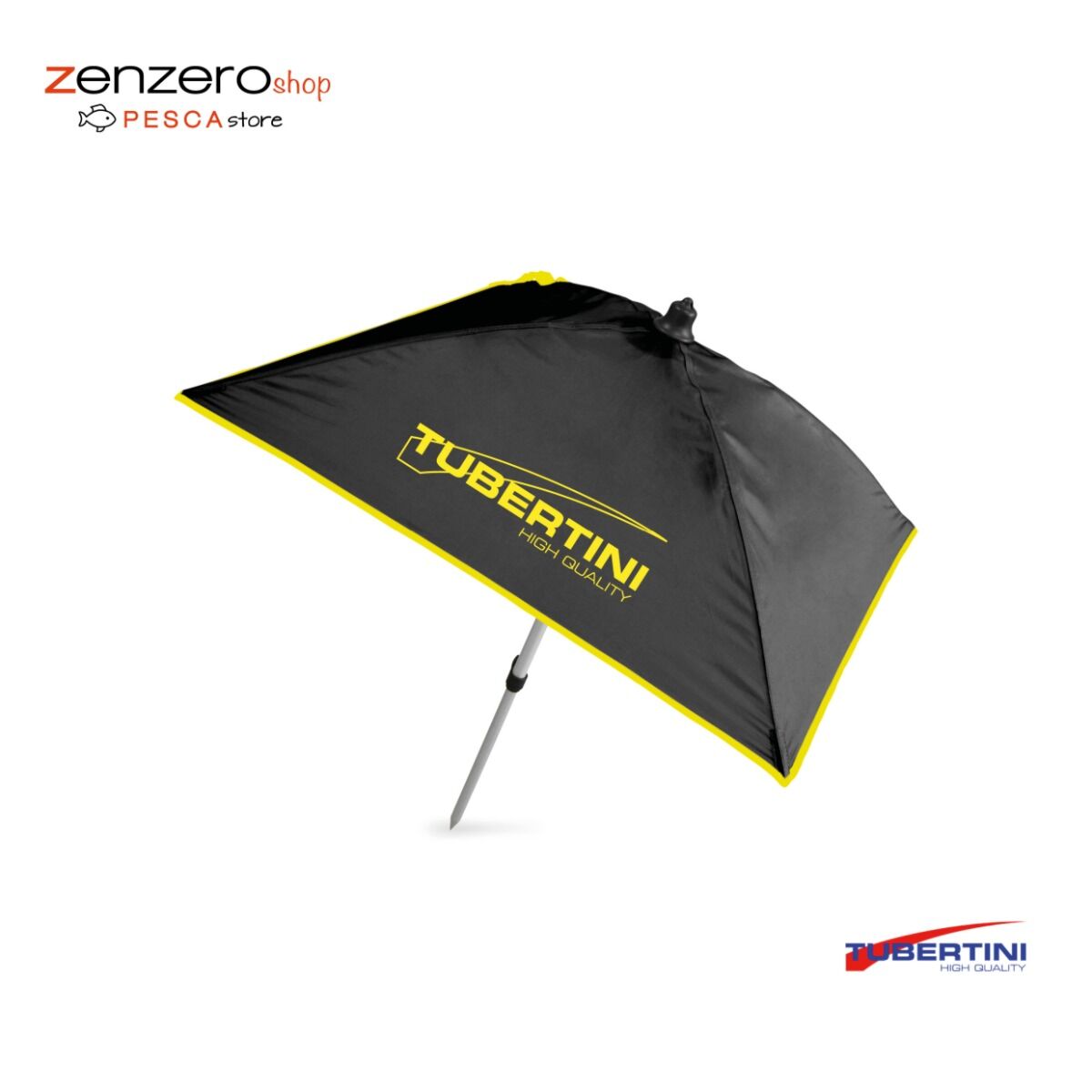 Ombrello quadrato, dotato di palo teleregolbile, è indispensabile per proteggere le esche dal sole o dalle intemperie.