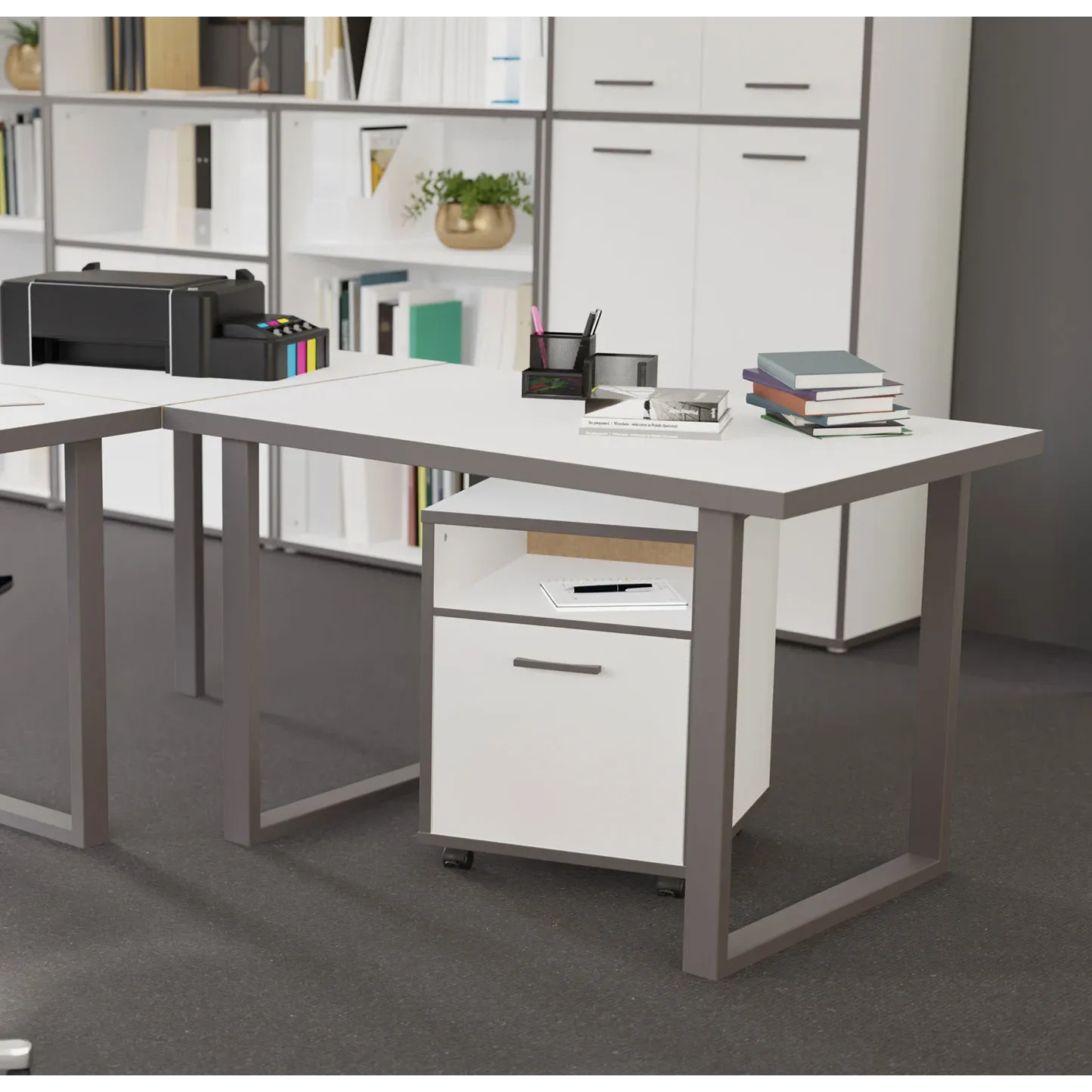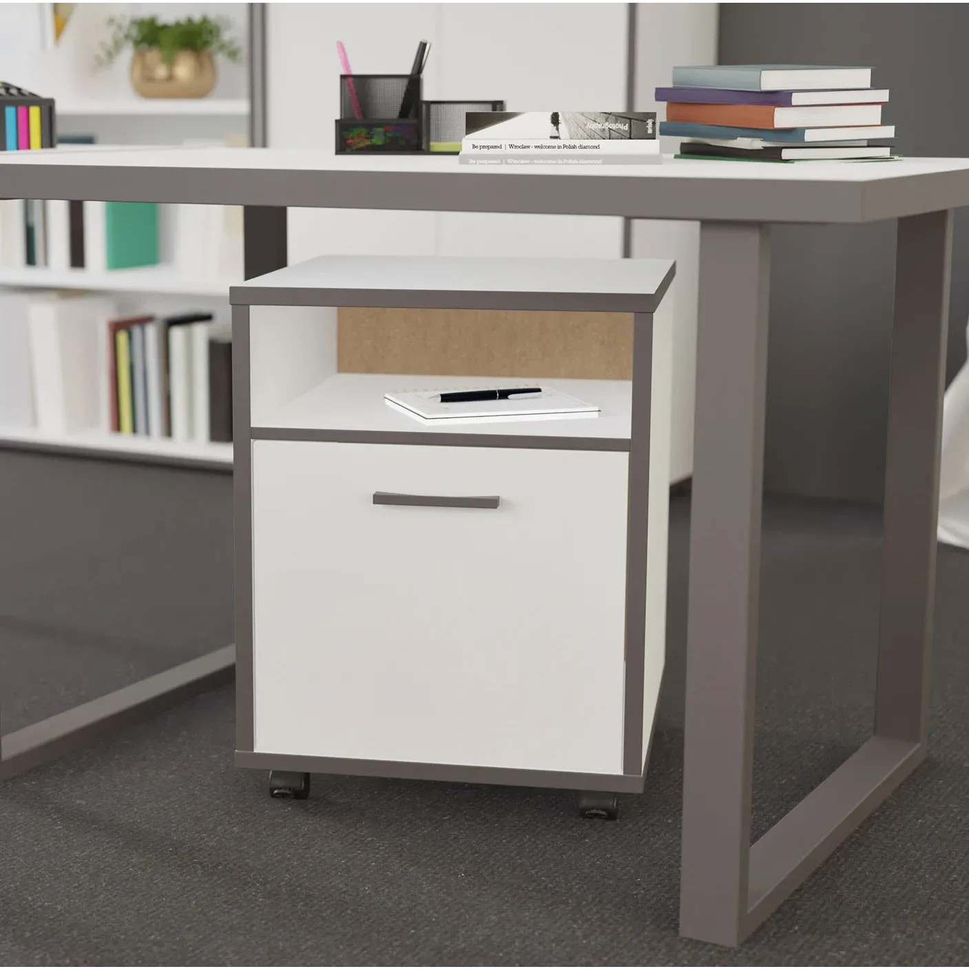 Questo ufficio completo rappresenta l'apice in fatto di design per gli articoli del suo ambito: i colori abbinati e chiamati ad animarne la superficie, il Bianco e il Grigio scuro, danno vita ad un mix che si rivela essere un piacere per occhi di chi guarda; le linee snelle ed aggraziate invece gli permettono di adattarsi a qualsiasi ambiente senza sfigurare.