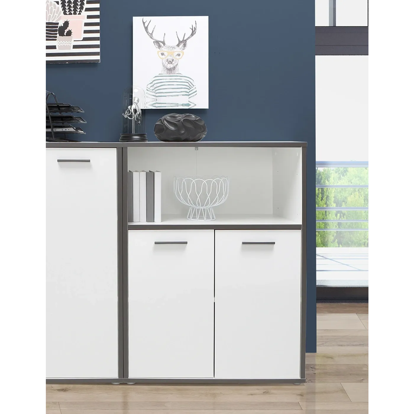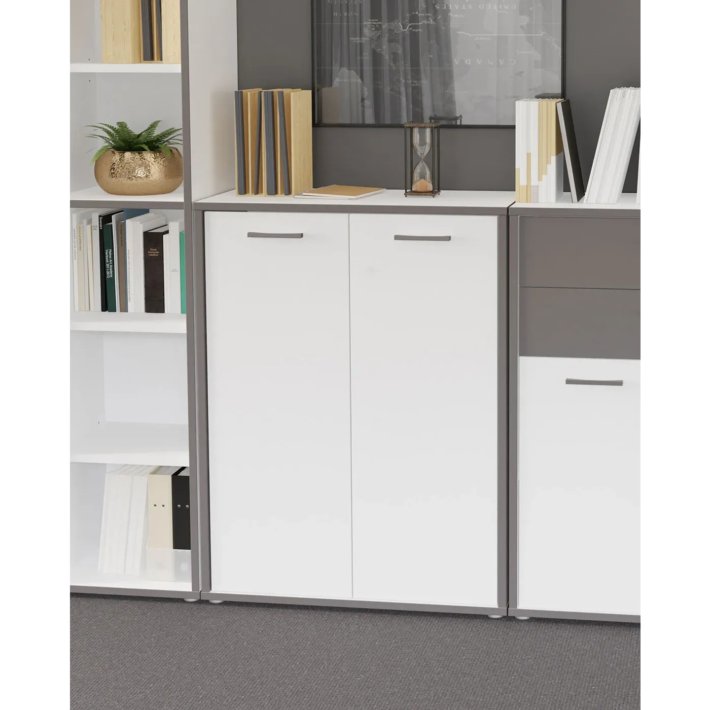 Un comodo e molto funzionale ufficio dotato di tutti i confort e di ciò che può offrire di norma un prodotto di questo genere, se non di più. In aggiunta si rivelerà un articolo dal grande potenziale d'arredo per quanto l'estetica in virtù della colorazione, data dalla combinazione Bianco e Grigio scuro, e delle forme semplici ma piacevoli.