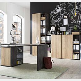 Ufficio completo in finitura ossido e rovere. Questo ufficio è composto da 2 librerie basse, 1 alta e una scrivania. Grazie al suo stile semplice ma di impatto è l'ideale per arredare il tuo ambiente.