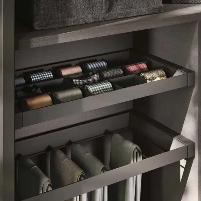 Perfetto per attrezzare l'armadio secondo le proprie esigenze il vassoio estraibile offre uno spazio per riporre oggetti di piccole dimensioni o cravatte, mantendo ordine e pulizia all'interno.