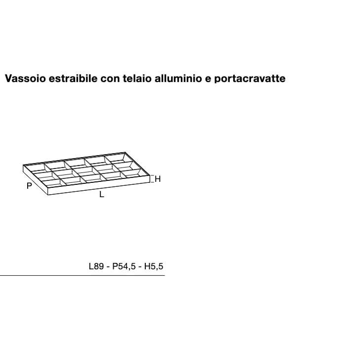 Vassoio estraibile con telaio alluminio e portacravatte per armadi L.90