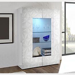 - Vetrina a 2 ante, moderna e di design colore bianco serigrafato con decorazioni prismatiche.