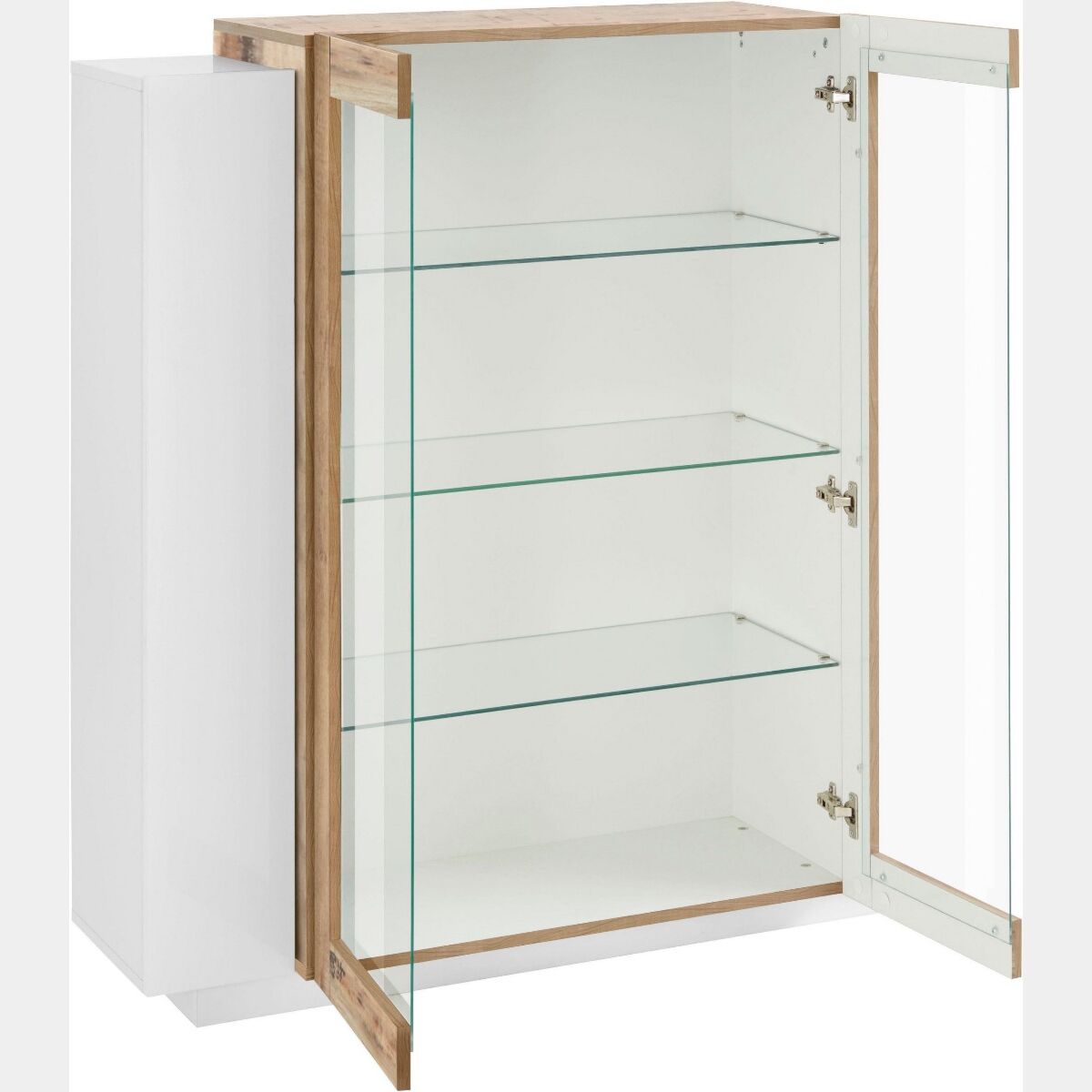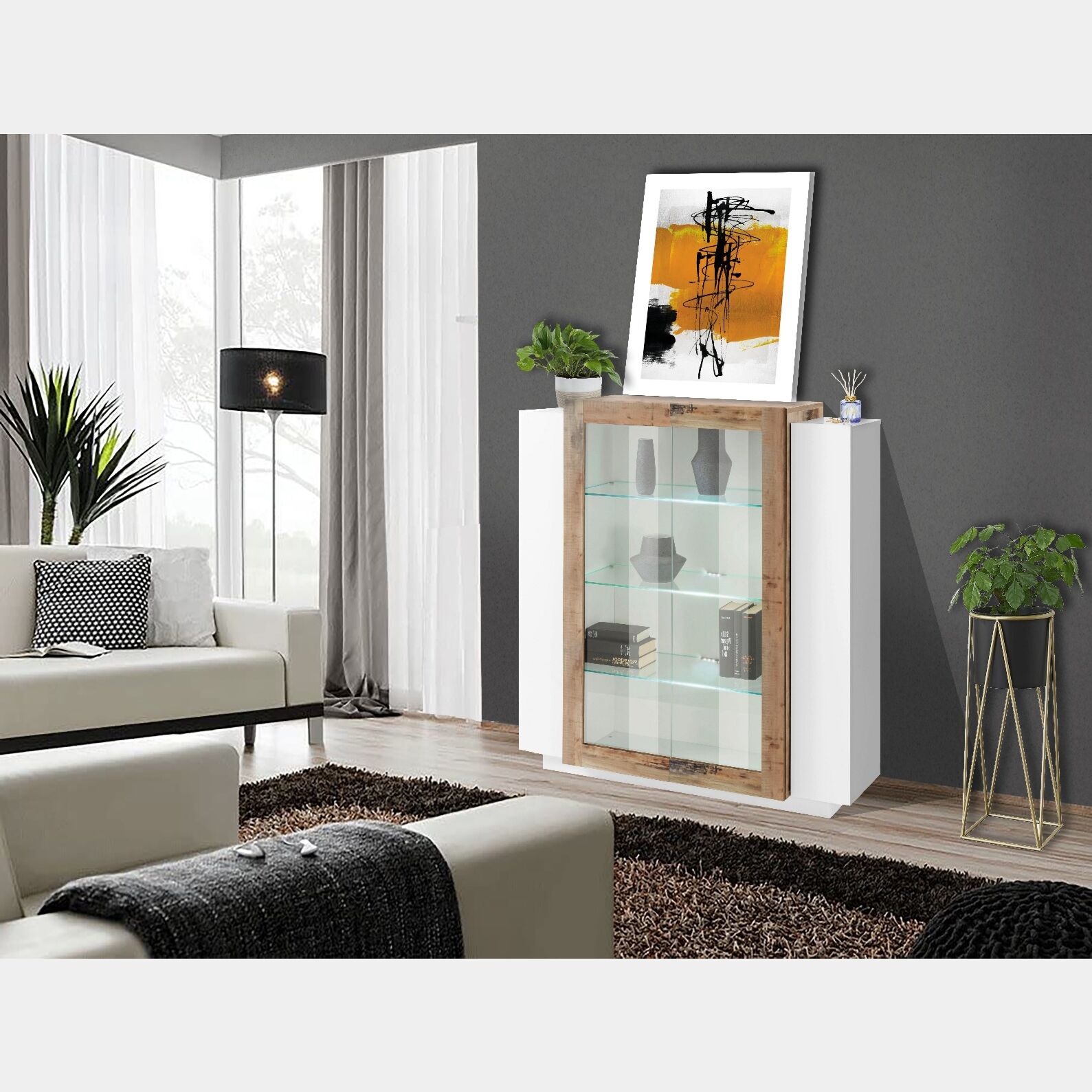 Grazie al suo design moderno la vetrina dona all'ambiente un tocco personalizzato, permettendoti di mettere in mostra soprammobili e oggetti vari senza rnunciare alla comodità. Le 2 finiture in Bianco lucido e Pero si uniscono per dare carattere e stile alla madia, rendendola unica e accattivante.