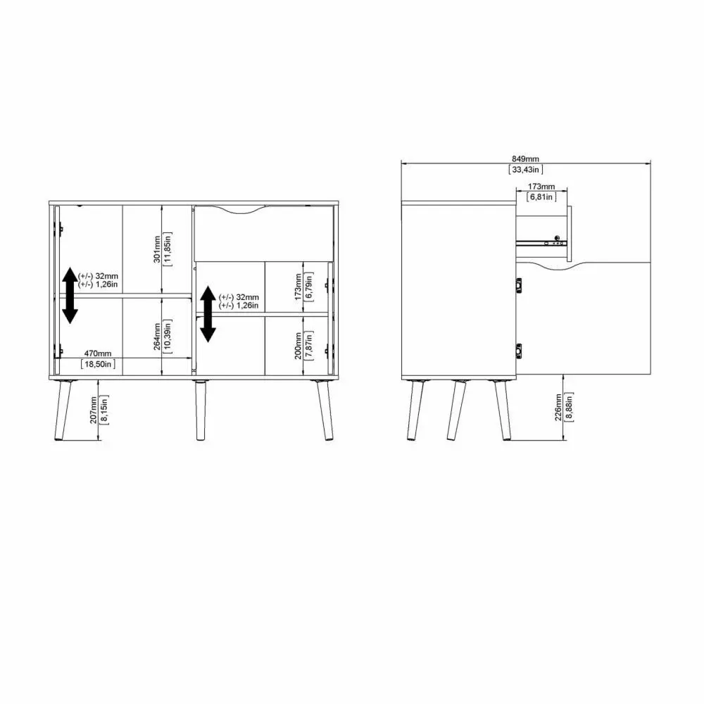 Madia con un cassetto e due anta colore Bianco e Rovere stile Nordico