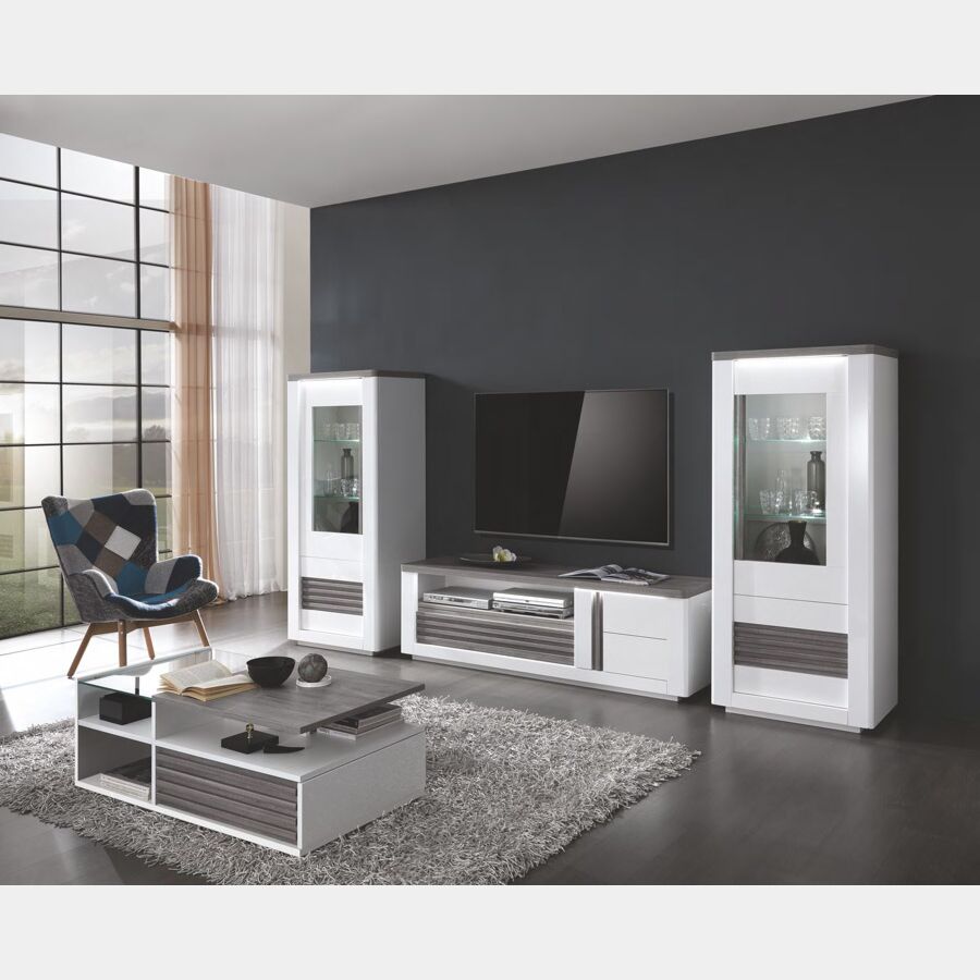Questa capiente vetrina colonna a 2 ante in finitura bianco laccato e rovere adamello, è una vetrina molto spaziosa, di tendenza e Made in Italy che renderà la vostra zona living un'ambiente elegante e raffinato!