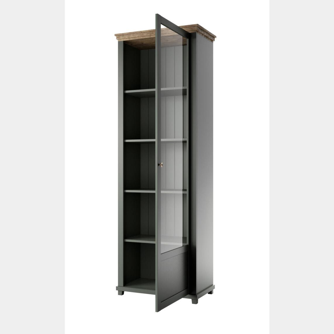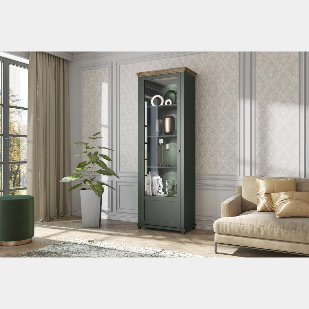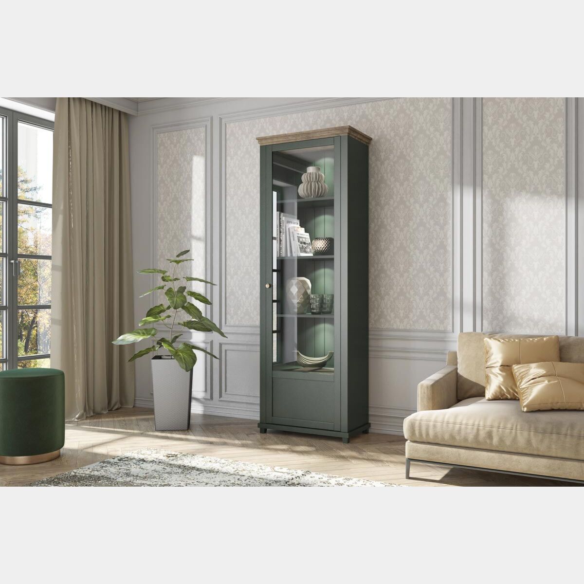 Vetrina Cracovia 1 anta colore verde scuro e quercia, è un complemento d'arredo unico grazie alla sua eleganza e alla particolarità dei suoi colori.