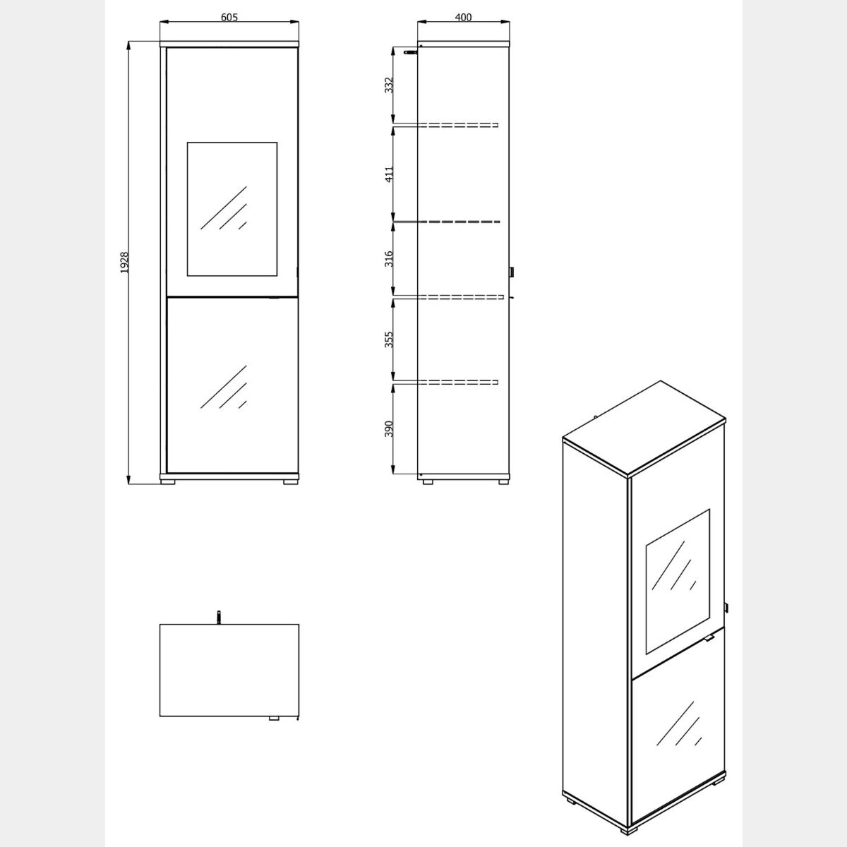 • Totali: L.60,5 H.192,8 P.40 cm