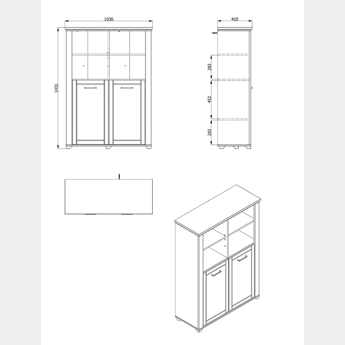 La vetrina a quattro ante è prodotta con pannelli certificati FSC®, nel rispetto dell'ambiente. La superficie presenta uno strato in nobilitato antigraffio.