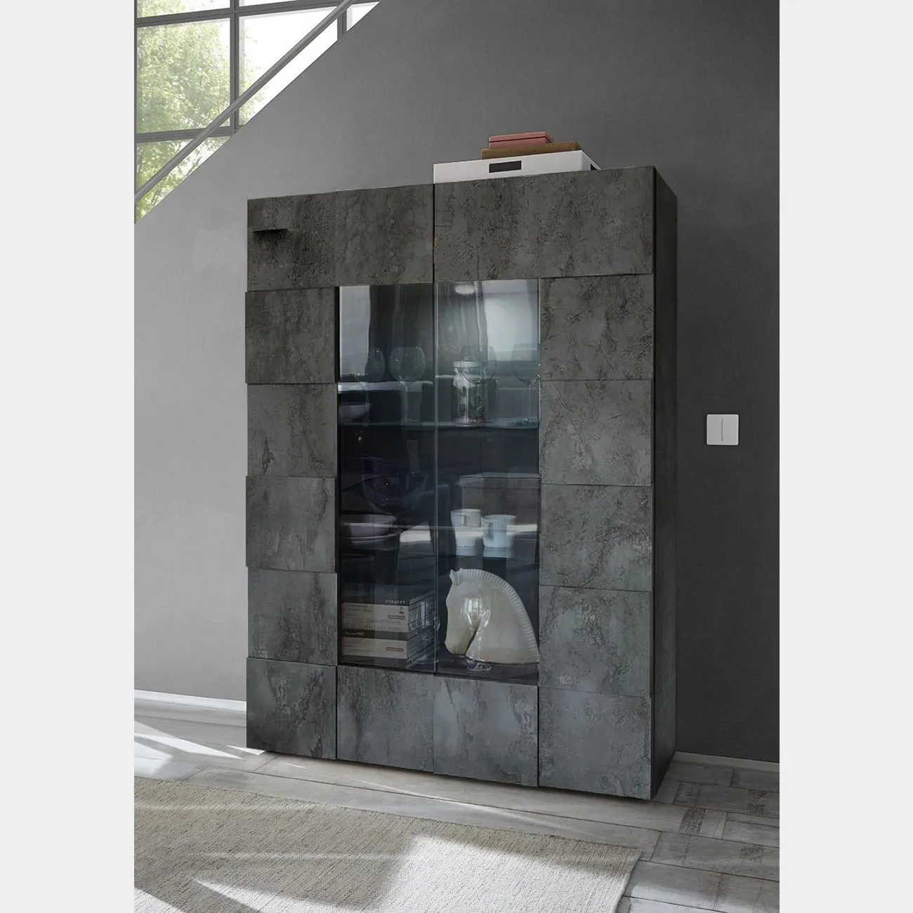 Vetrina dal design moderno a 2 ante, finitura Ossido