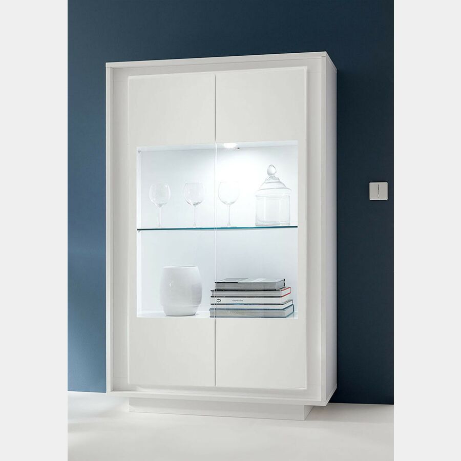 Vetrina Design Moderno, 2 ante Alta, Bianco Opaco