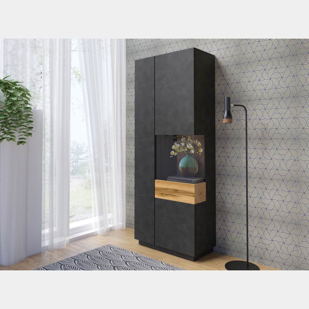 Vetrina di design, colonna a 2 ante, antracite e rovere naturale