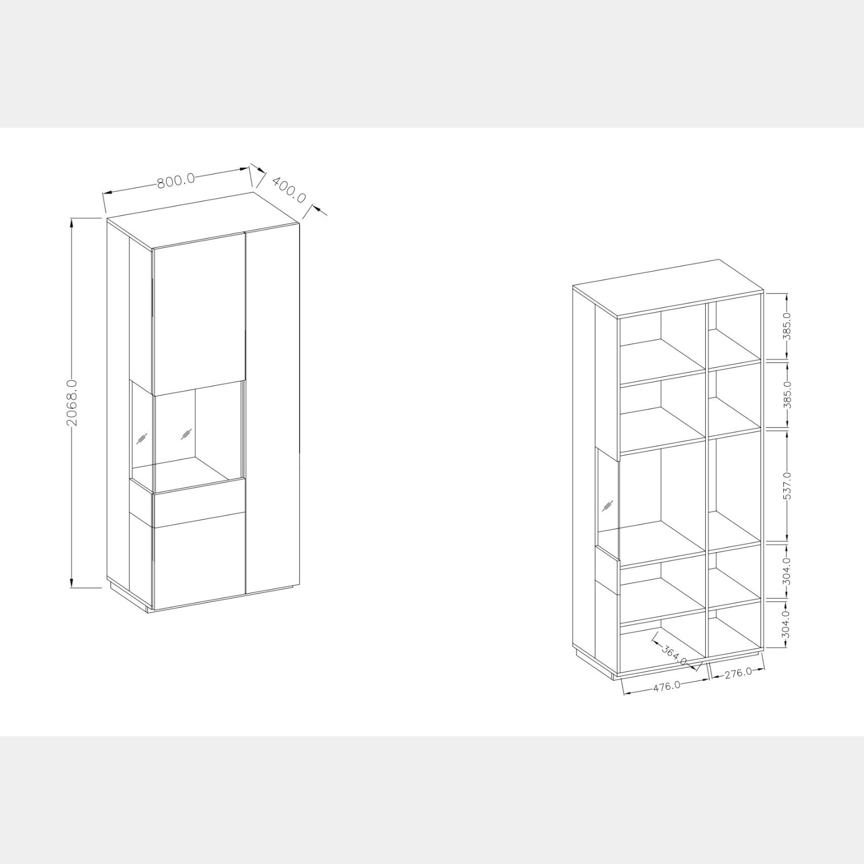 E' una vetrina che si adatta a qualsiasi stanza e la rende una decorazione avanguardista e dallo stile unico. Le sue tinte neutre permettono di integrarsi alla perfezione in numerosi stili di arredo e si potranno per esempio abbinare ad accessori dai colori accesi per creare un delicato contrasto (tappeto, illuminazione, ecc.).