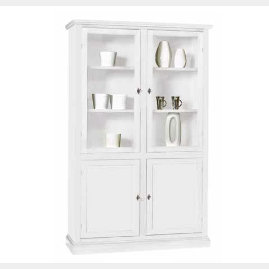 Vetrina in legno finitura bianco opaco, 2 porte e 2 ante in vetro