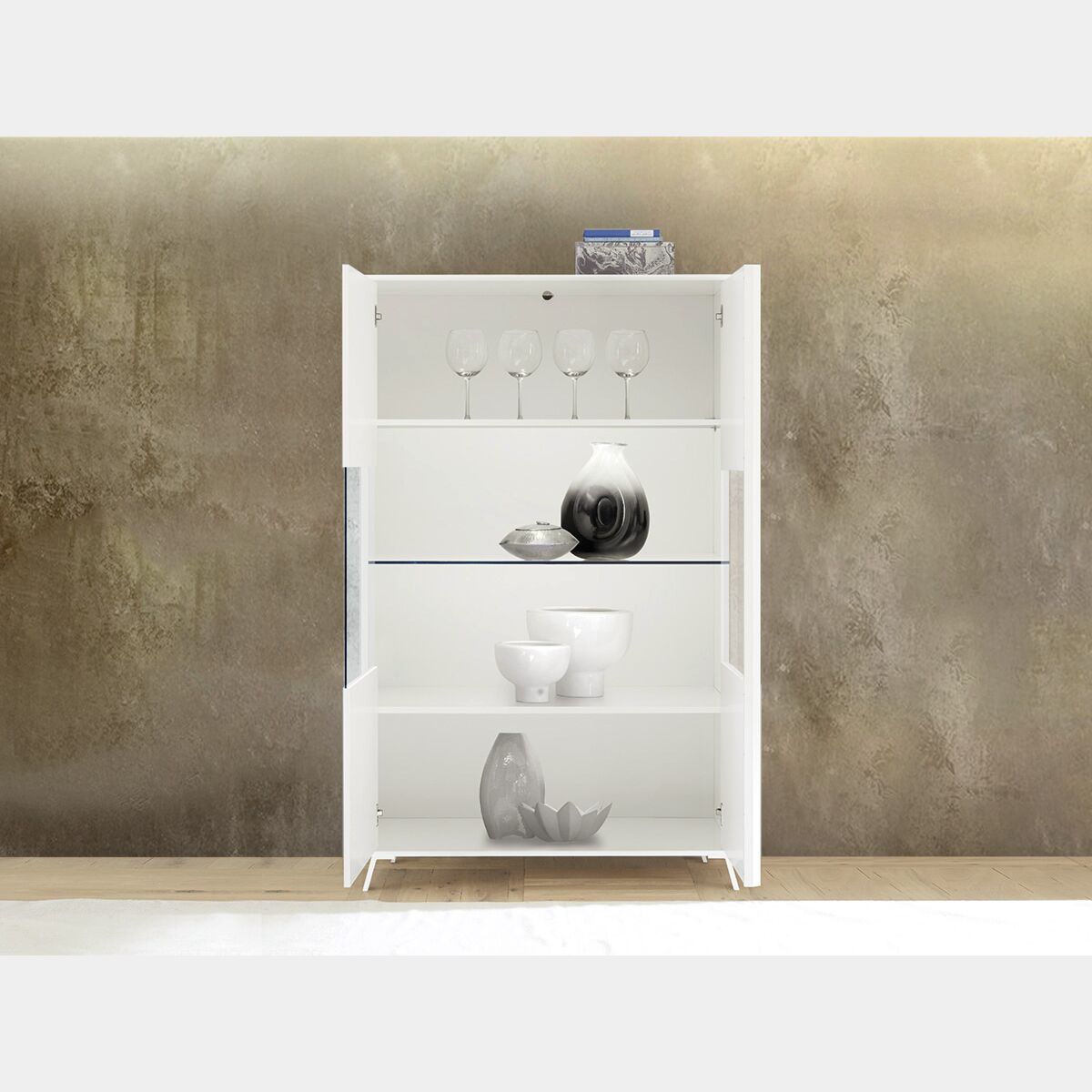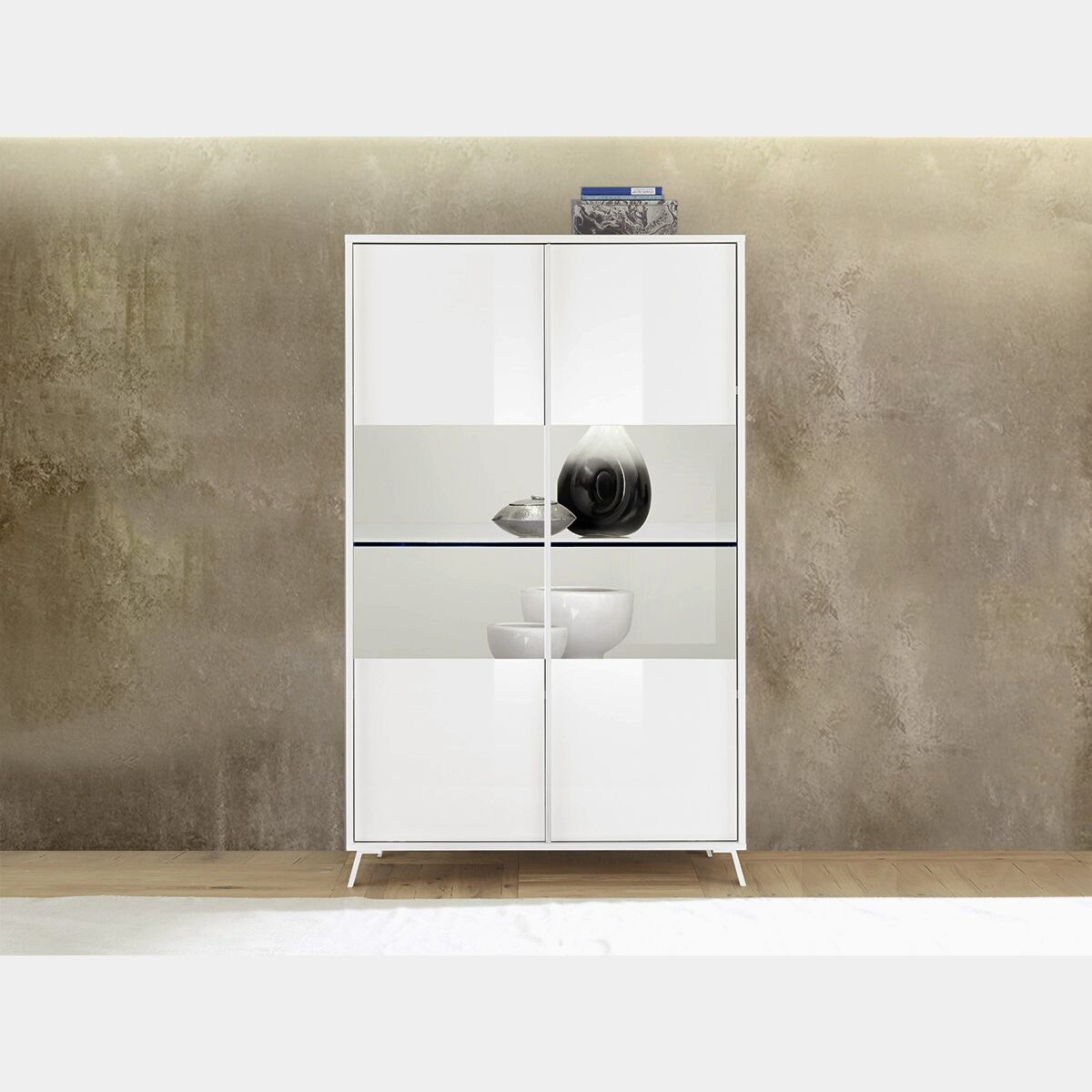 Vetrina moderna 2 ante parzialmente vetro, finitura Bianco lucido
