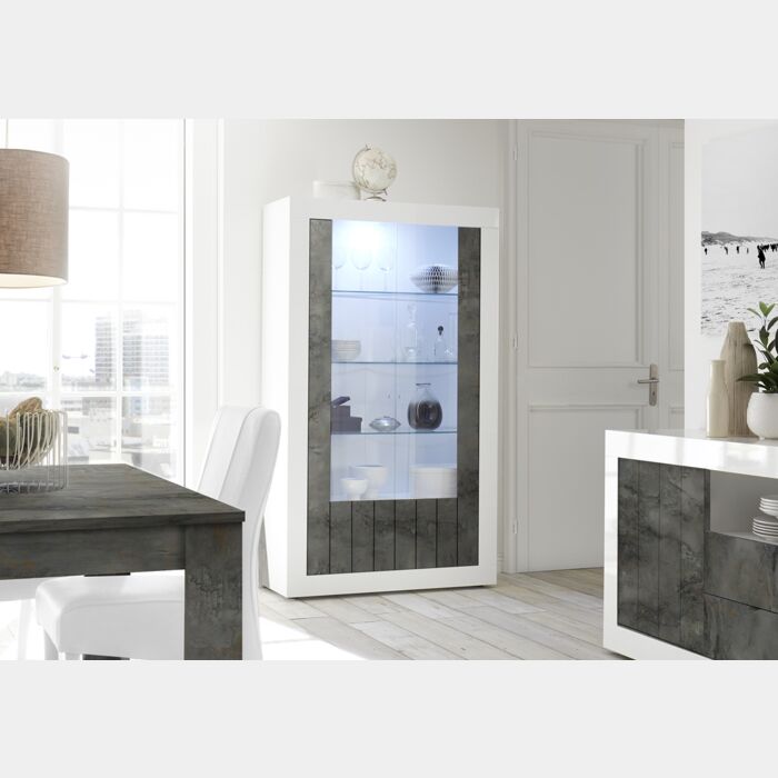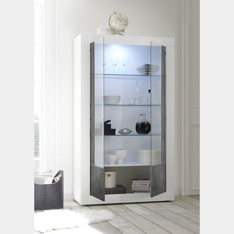Vetrina moderna, 2 ante in vetro nella finitura Ossido e Bianco Laccato Lucido