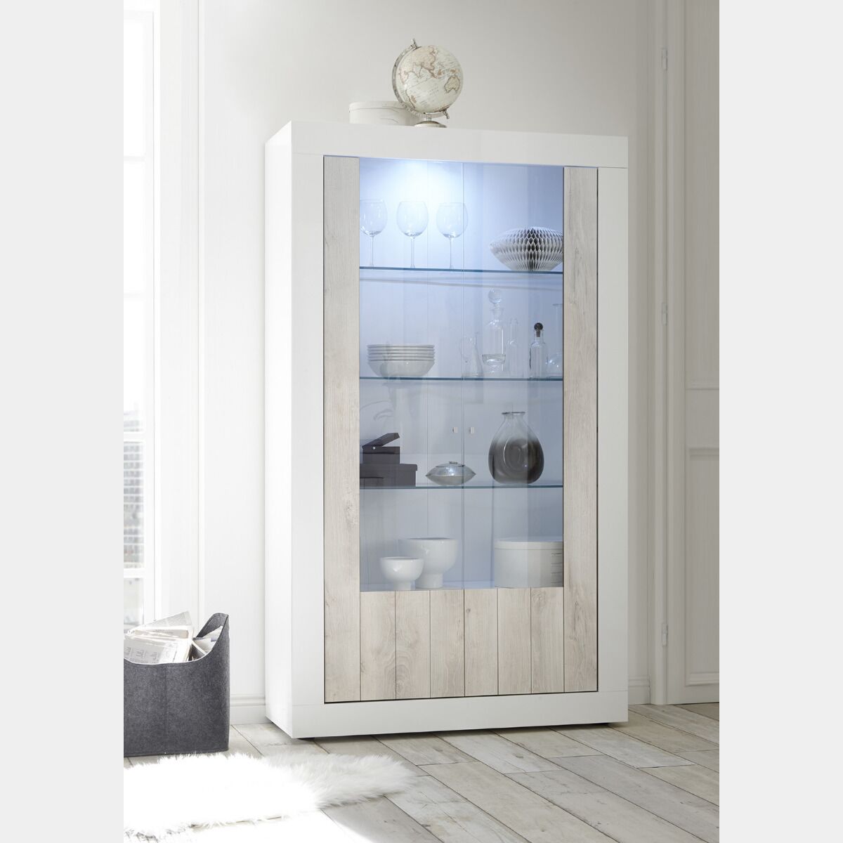 Vetrina Bianca Lucida e Pino Bianco a 2 ante con ripiani in vetro