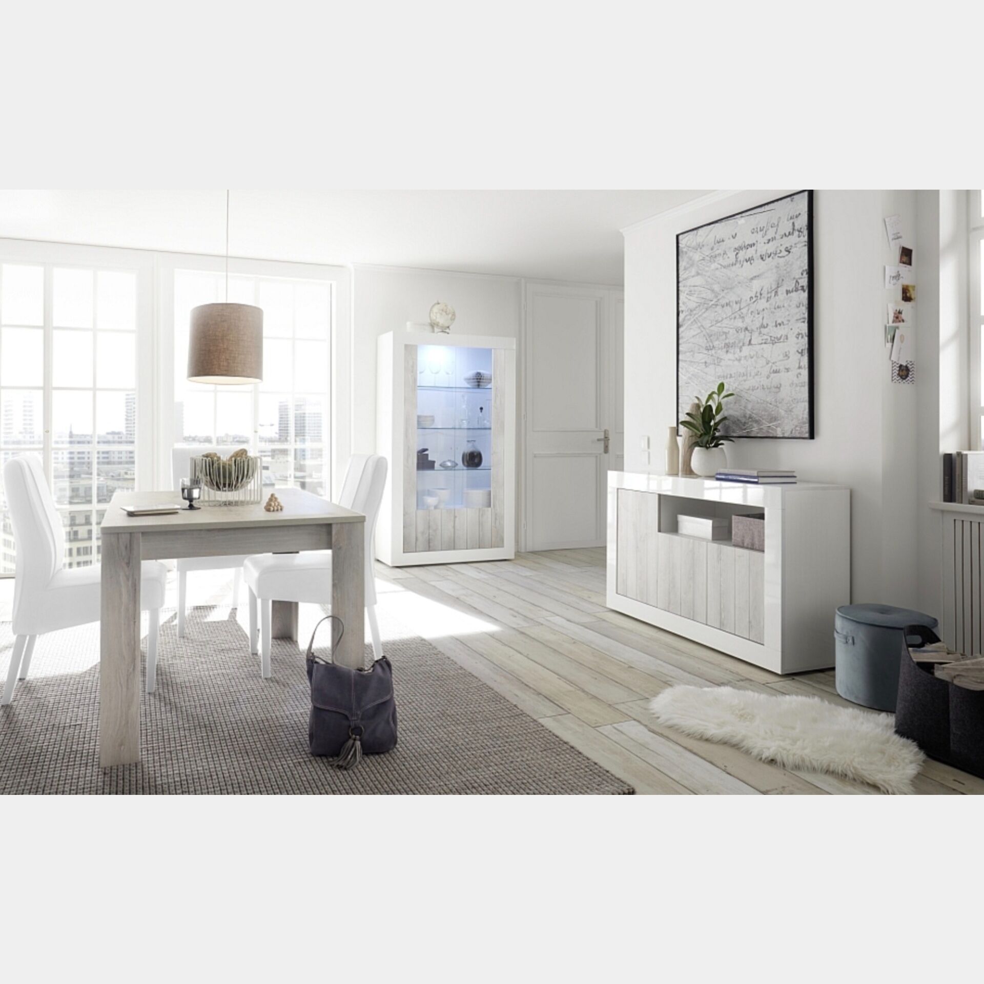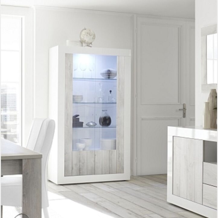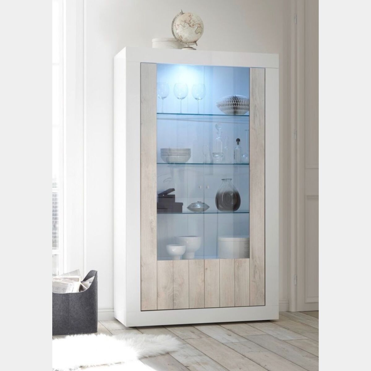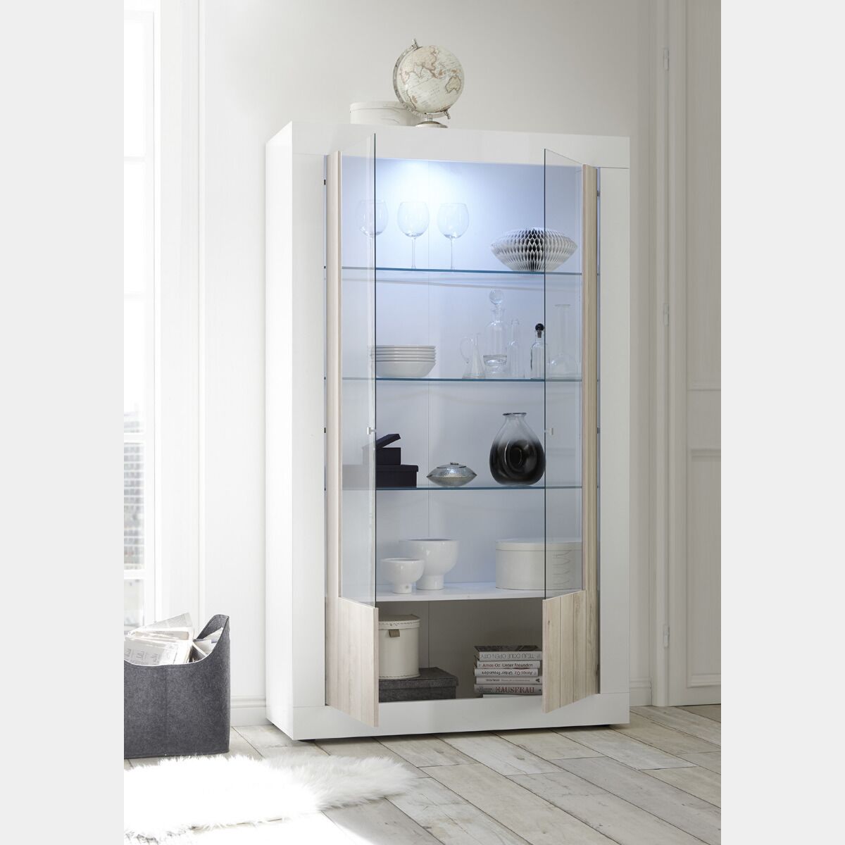 Vetrina moderna, 2 ante in vetro nella finitura Pino Bianco e Bianco Laccato Lucido. La vetrina con 2 ante unisce l'eleganza del design italiano e il fascino moderno offrendo così un risultato estremamente chic e rendendo la vostra zona living di tendenza.