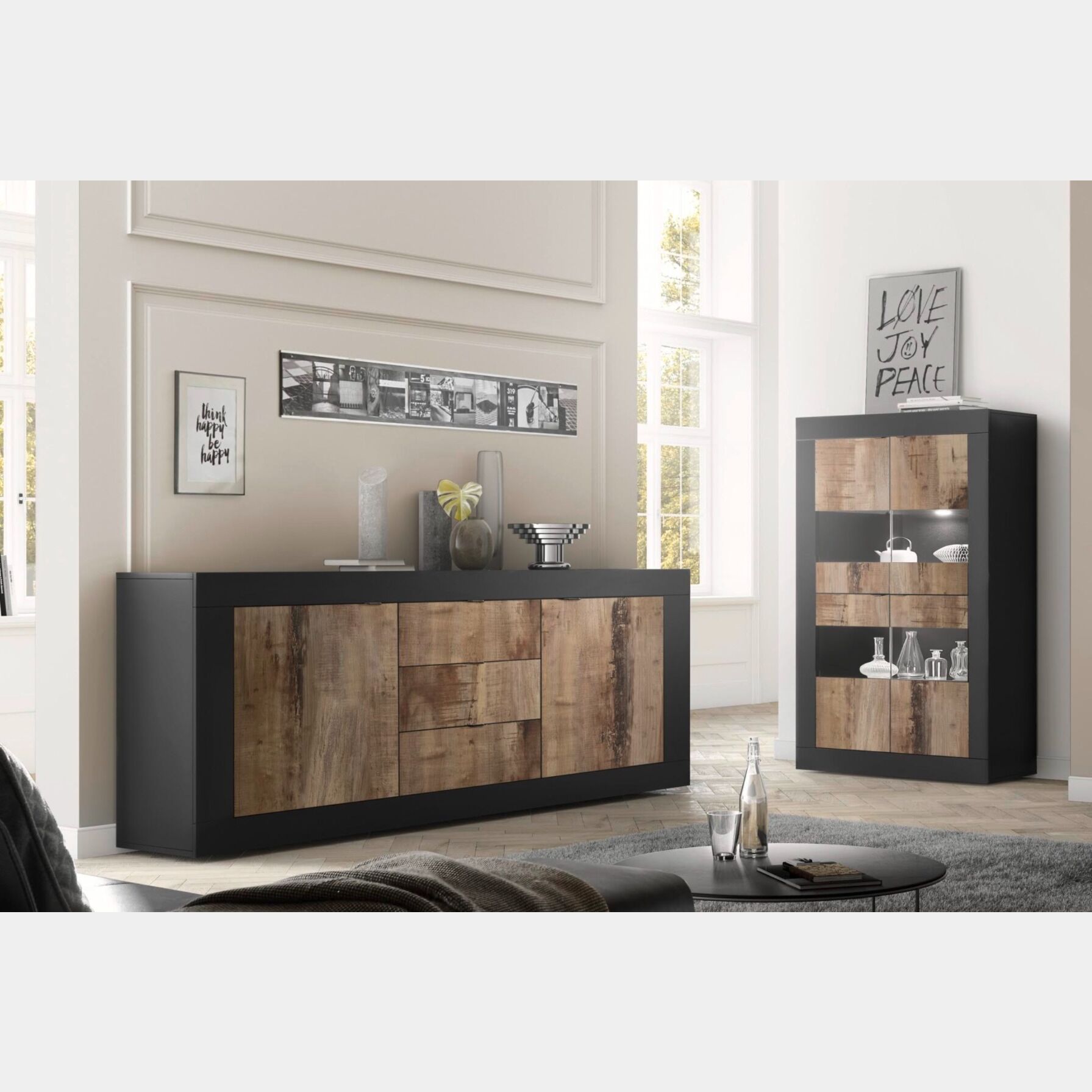 L'eleganza del nero si unisce alle mille sfumature del pero per rendere la vetrina moderna e raffinata, mantenendo una linea pulita ma di impatto. Pensata per ambienti nuovi la vetrina diventerà la protagonista del tuo soggiorno, rendendolo unico.