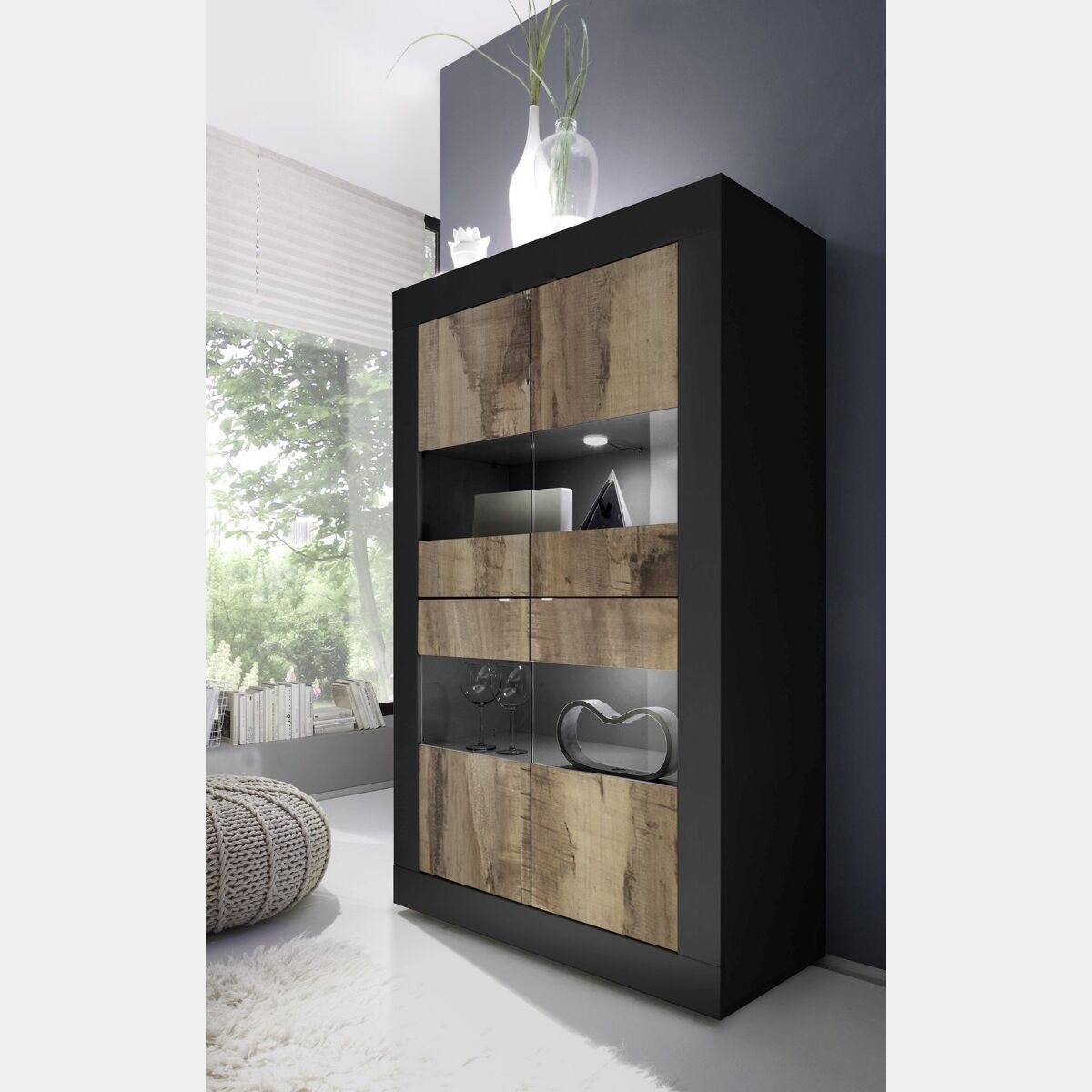 Vetrina moderna scontata con 2 ante, Nero e Pero