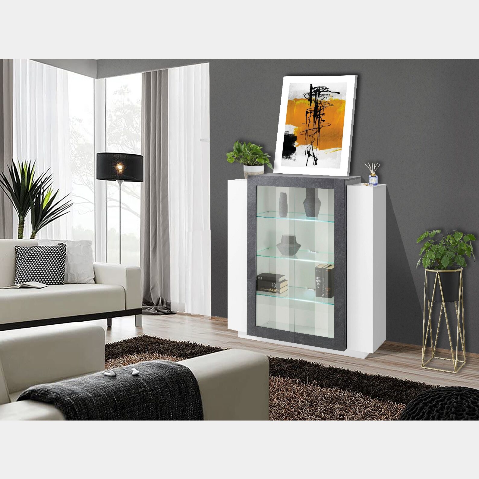 Vetrina soggiorno moderno in finitura Bianco lucido e Ardesia