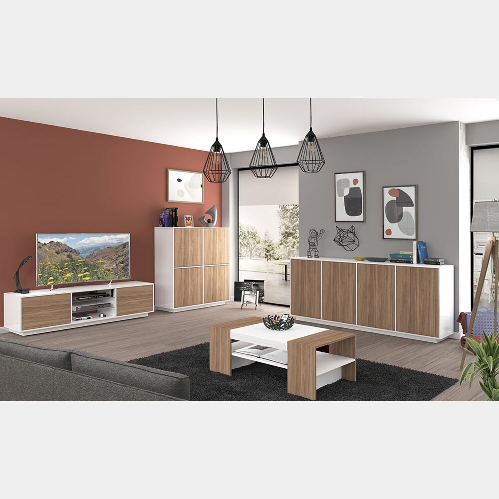 Zona giorno moderna composta da madia alta, porta TV e madia 4 ante