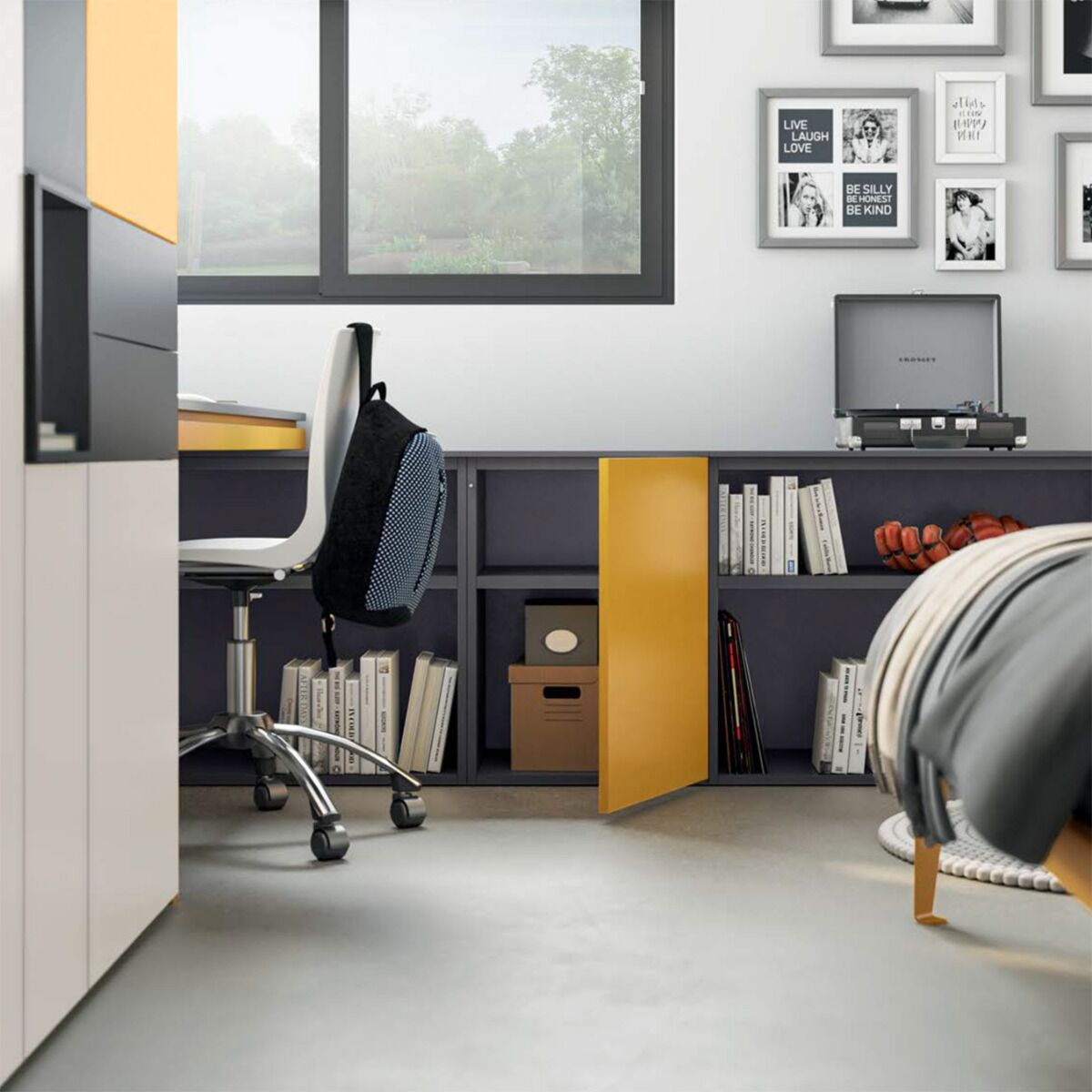Le finiture Ocra e Antracite possono essere personalizzate tramite configuratore per creare una zona studio che rispecchi i propri gusti.