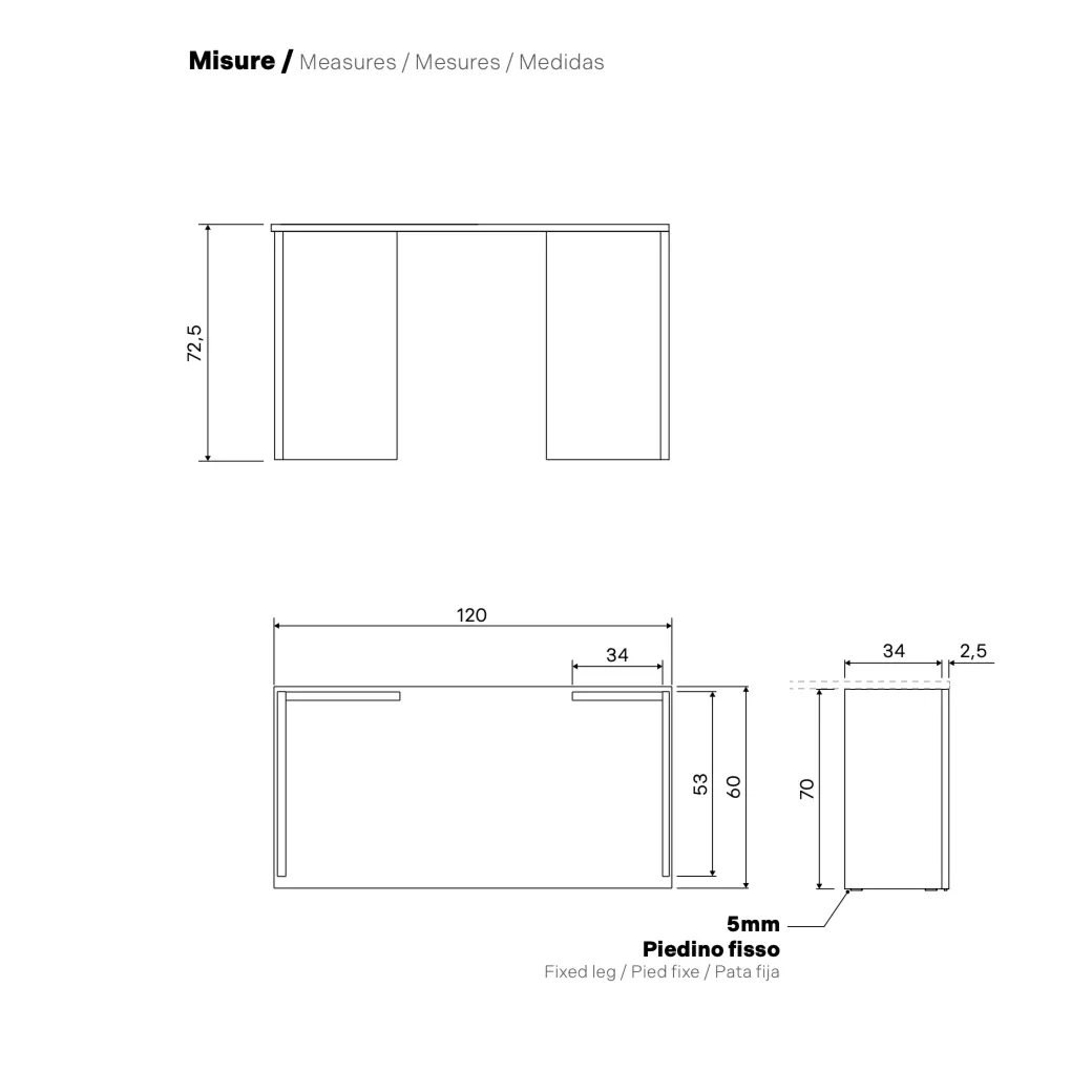 • Scrivania: L.120 H.72,5 P.60
